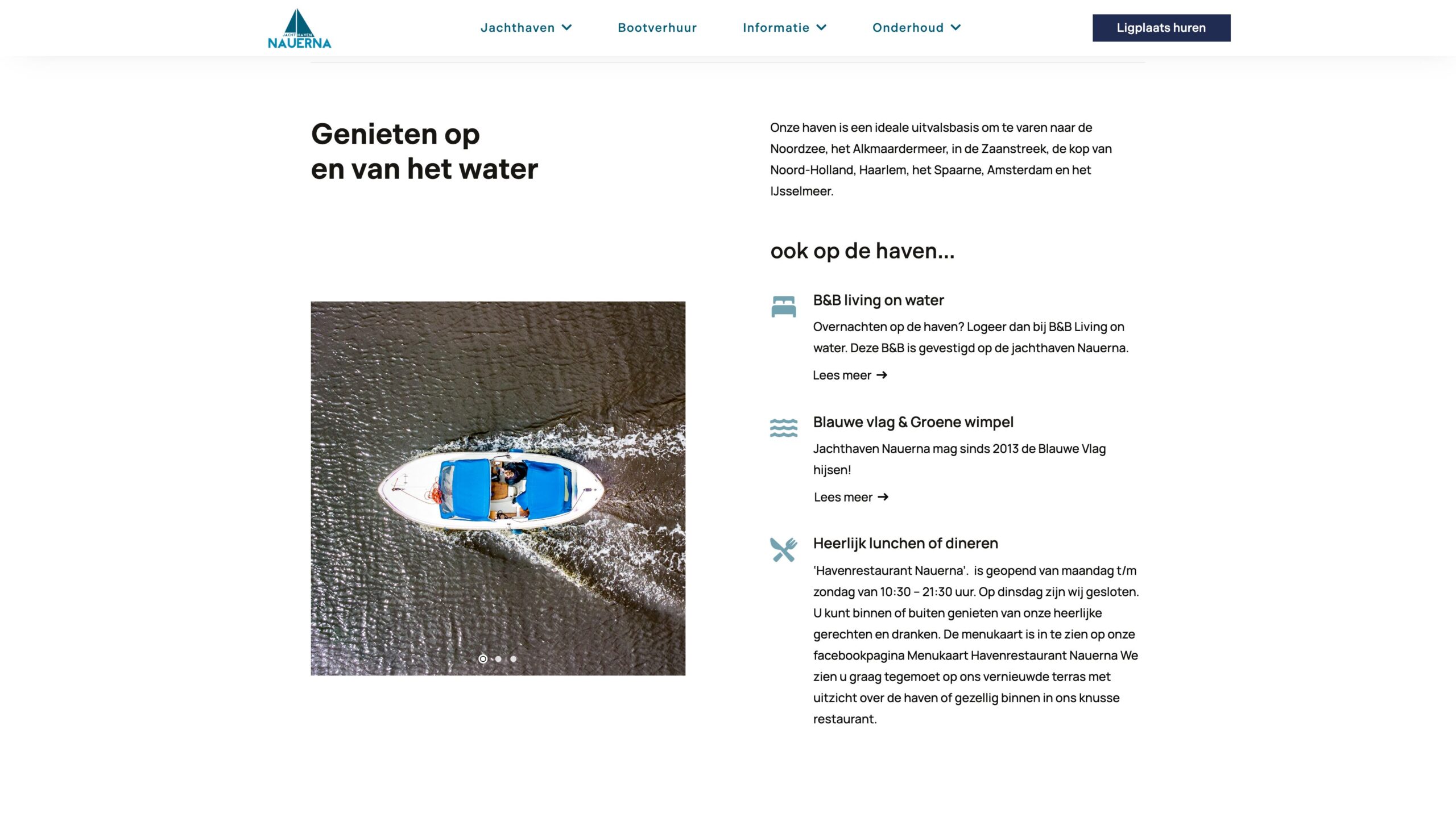Jachthaven Nauerna ligt tussen het Markermeer en de Noordzee en is daardoor de ideale starthaven. De jachthaven verhuurt boten, ligplaatsen en biedt onderhoud aan. Ook biedt Jachthaven Nauerna een B&B aan zodat er overnacht kan worden op de haven.