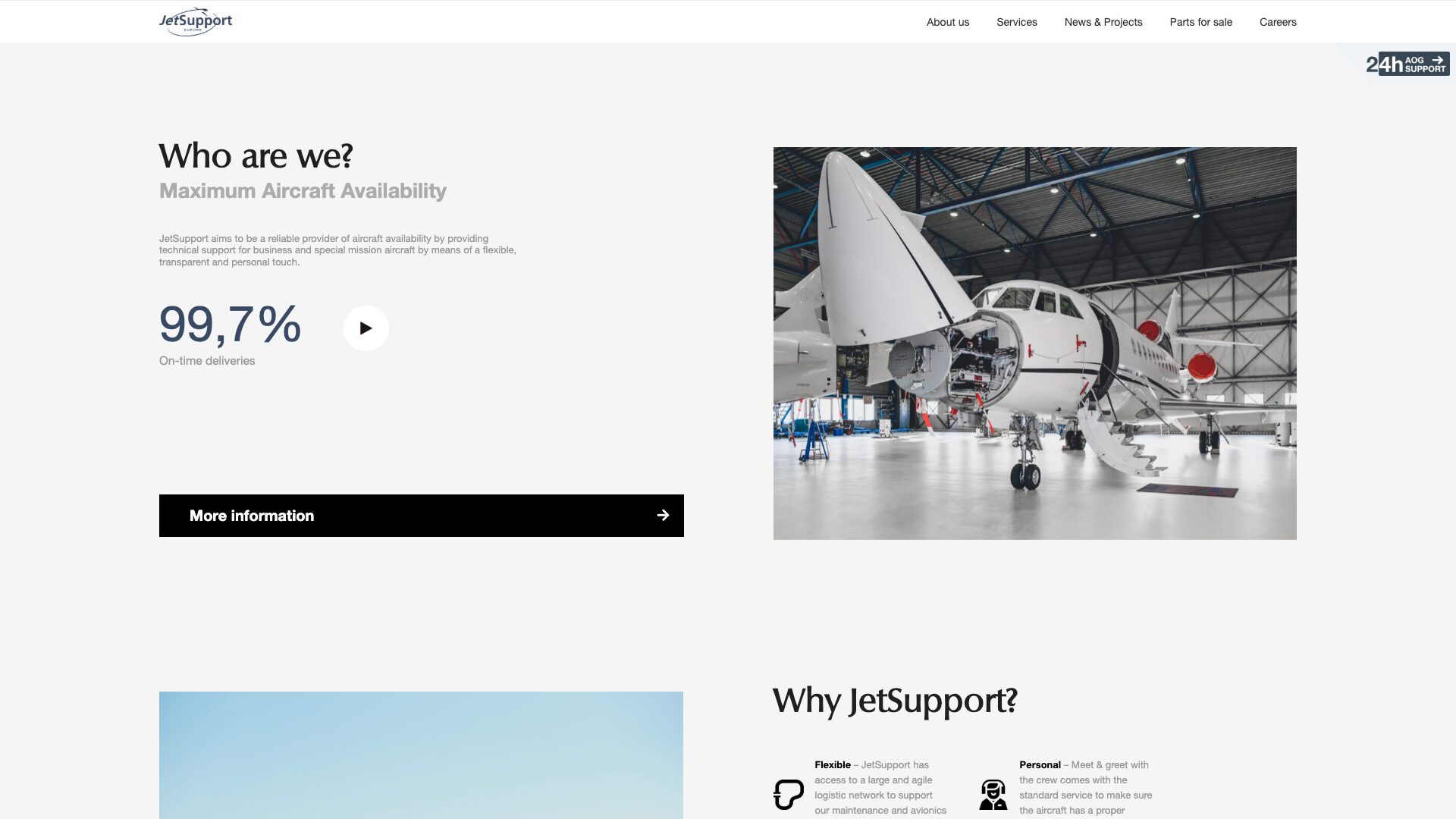 JetSupport is een luchtvaartbedrijf gevestigd op Schiphol-Oost dat gespecialiseerd is in onderhoud van zakelijke en speciale vliegtuigen. Bij JetSupport kun je terecht voor technische ondersteuninge snelle service.