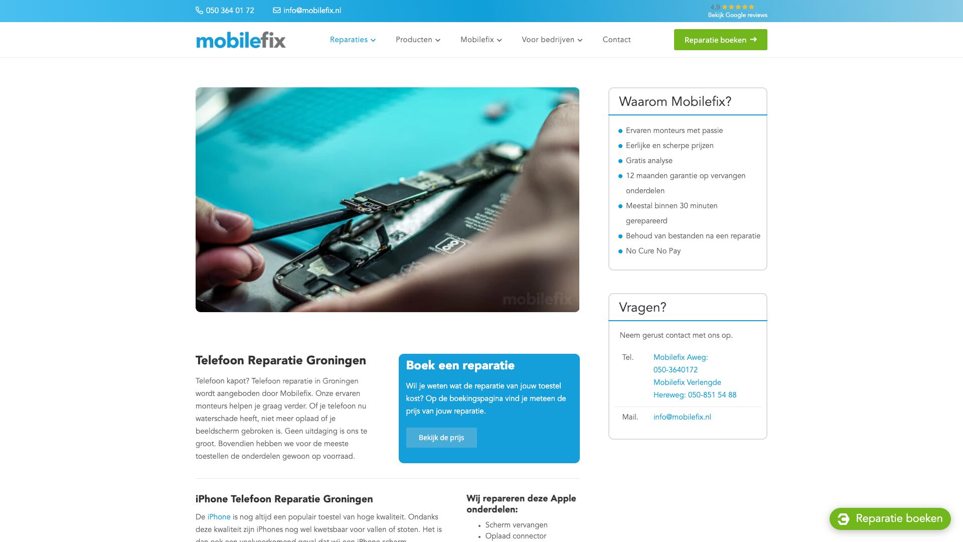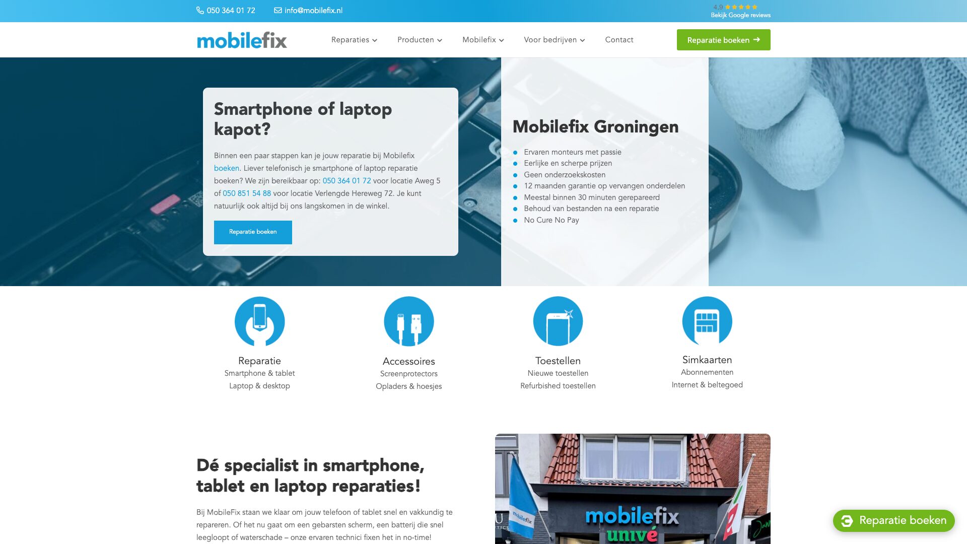 Mobilefix in Groningen is dé specialist in het repareren van smartphones, tablets en laptops. Het bedrijf heeft twee vestigingen in Groningen en biedt naast reparatieservice ook een groot assortiment aan beschermende accessoires aan.