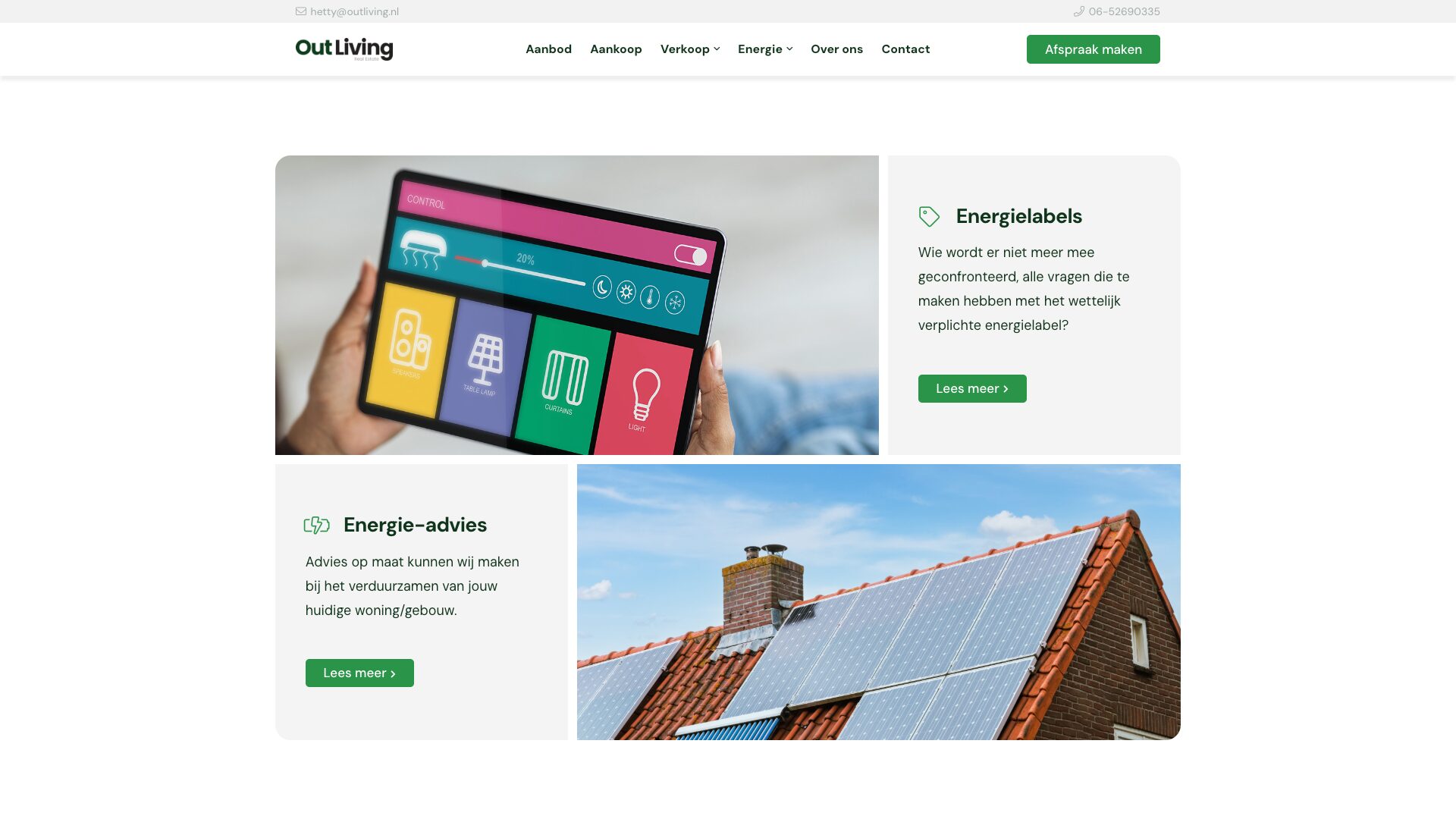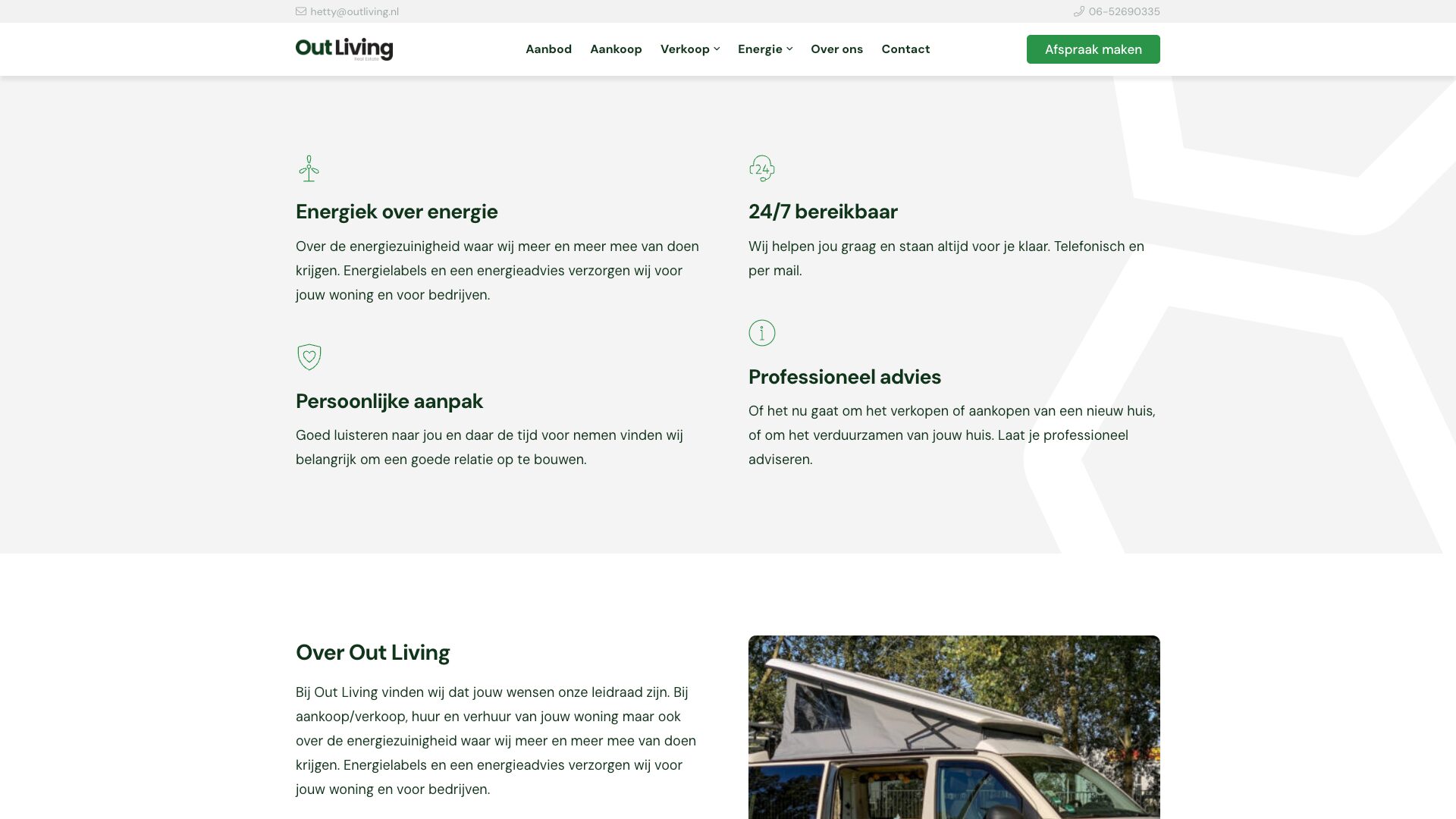 Out Living Real Estate biedt persoonlijke ondersteuning bij het kopen en verkopen van je huis. Het bedrijf opereert vanuit een kantoor op wielen en is gespecialiseerd in energieadvies.