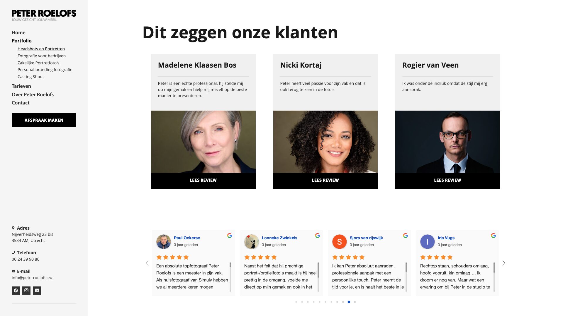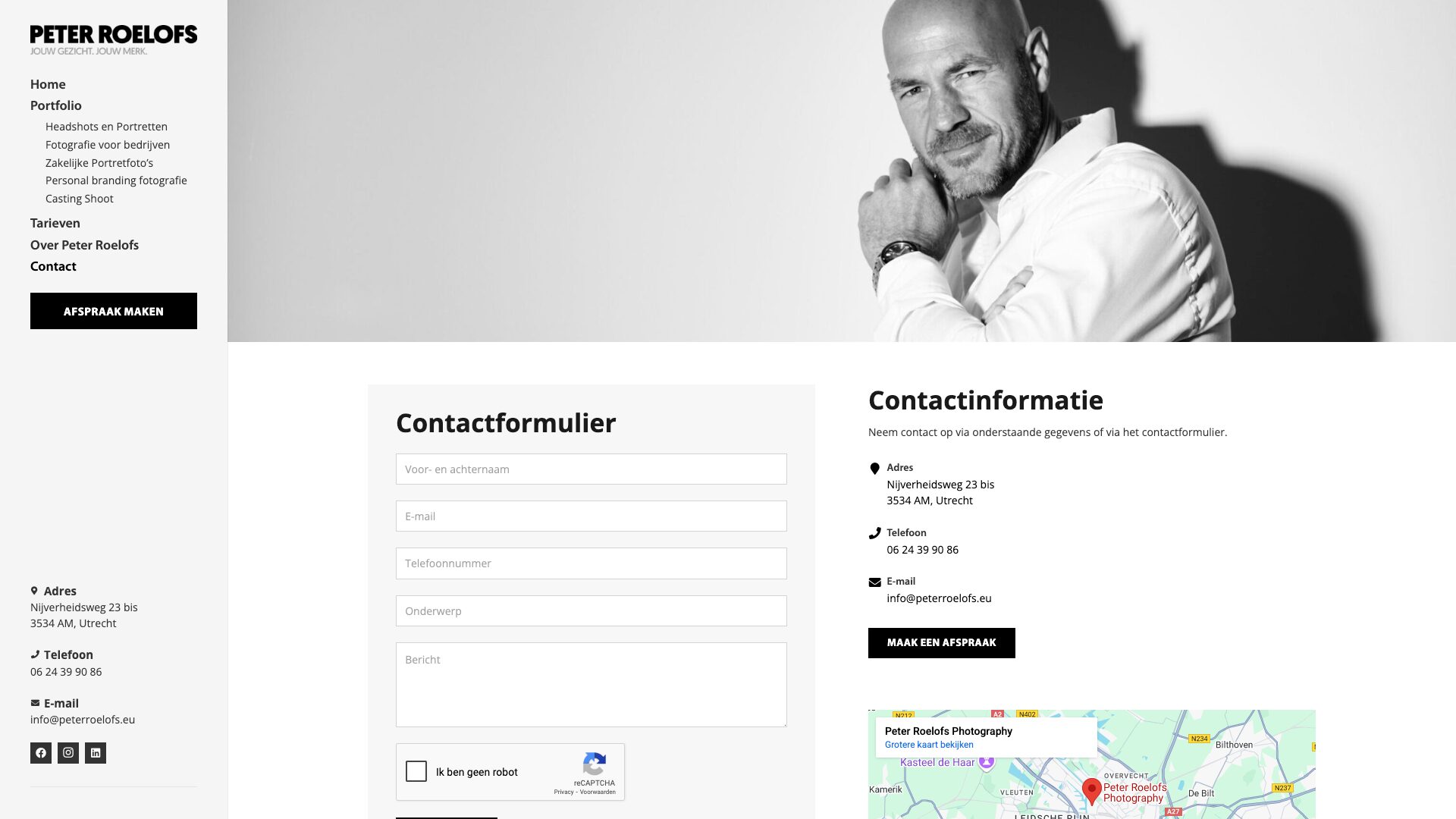 Peter Roelofs is een professionele fotograaf met een fotostudio in Utrecht. Hij is gespecialiseerd in persoonlijke portretten en zakelijke profielfoto’s voor zowel particulieren als bedrijven. Of Het nu gaat om een LinkedIn-profielfoto of bedrijfsfoto’s voor een nieuwe website, bij Peter ben je aan het goede adres.